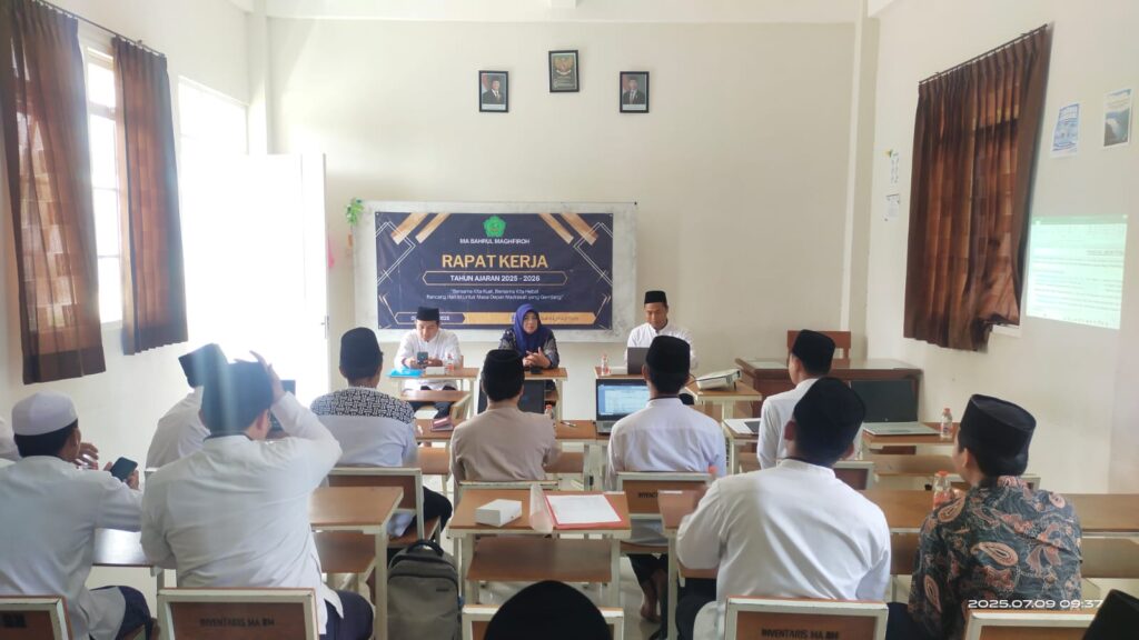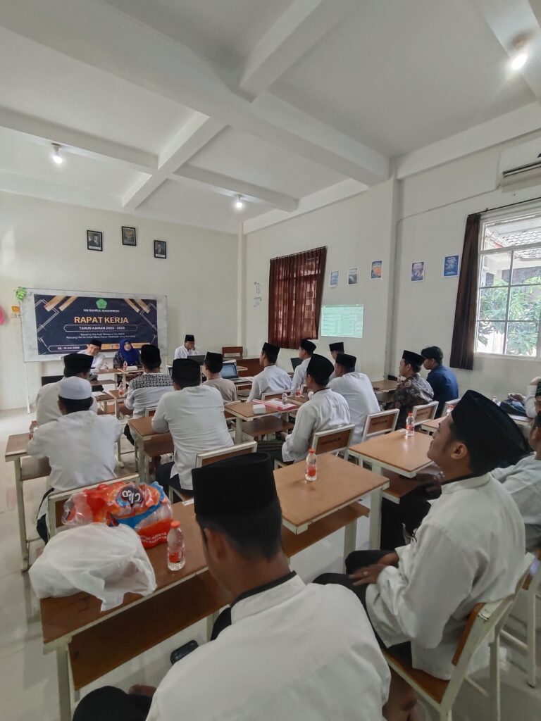 Malang, 10 Juli 2025 — MA Bahrul Maghfiroh kembali menyelenggarakan kegiatan Rapat Kerja Dewan Guru yang menjadi agenda rutin sebelum dimulainya aktivitas pembelajaran di tahun ajaran baru. Bertempat di ruang kelas utama MA Bahrul Maghfiroh, rapat yang dilaksanakan pada Kamis pagi ini dihadiri oleh seluruh jajaran dewan guru dan staf madrasah.
